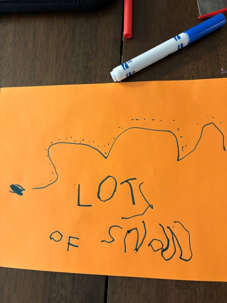 Welp, apparently snow days no longer exist. It’s sad that kids today will never know the thrill of waking up to a snow (or in my lowcountry case, hurricane) warning and running to the tv with crossed fingers to see if your school was canceled. Now that they’ve added holidays to the school calendar while still needing to hit 180 days of school and have proven that remote learning “works,” when schools themselves are closed, they’re still very much in session. It’s very difficult when school is closed but work is not, so it was a long, tough day on Monday. I was surprised that even in preK, Finn still had assignments that I had to photograph and upload, but at least it helped us fill out the day. I particularly liked his writing assignment, where he had to write down his observations of the snow. It may not look like much, but the fact that he didn’t trace a single letter (I just told him which letters to write) is a big deal. We survived.