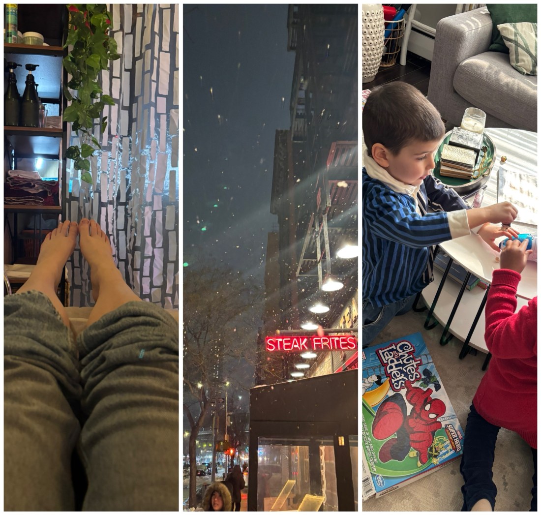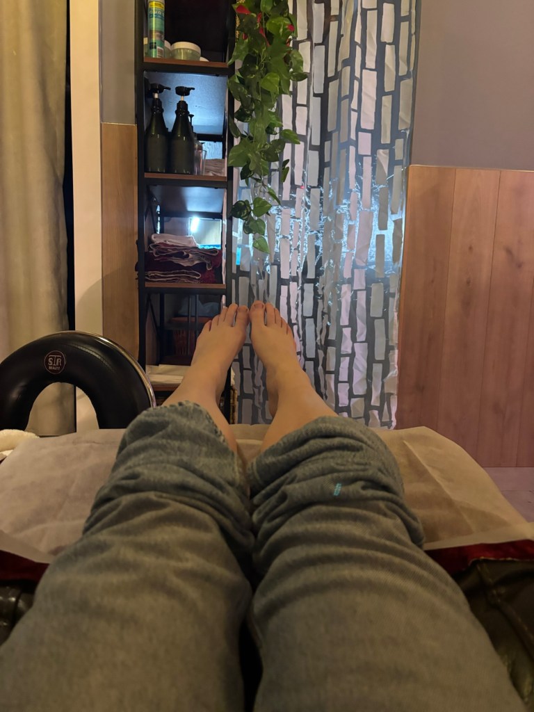 For Albert’s birthday, I got him tickets to a big St. John’s game, and it was time to cash in. He decided to take a friend, but we’d already locked down a sitter for the evening since it was initially going to be a date night. Rather than waste the sitter, I made plans with friends and those plans began with a leg massage. I can’t tell you how incredible this was after a long week of work. All weekends should begin like this.