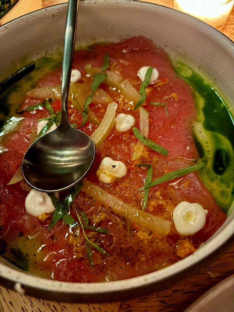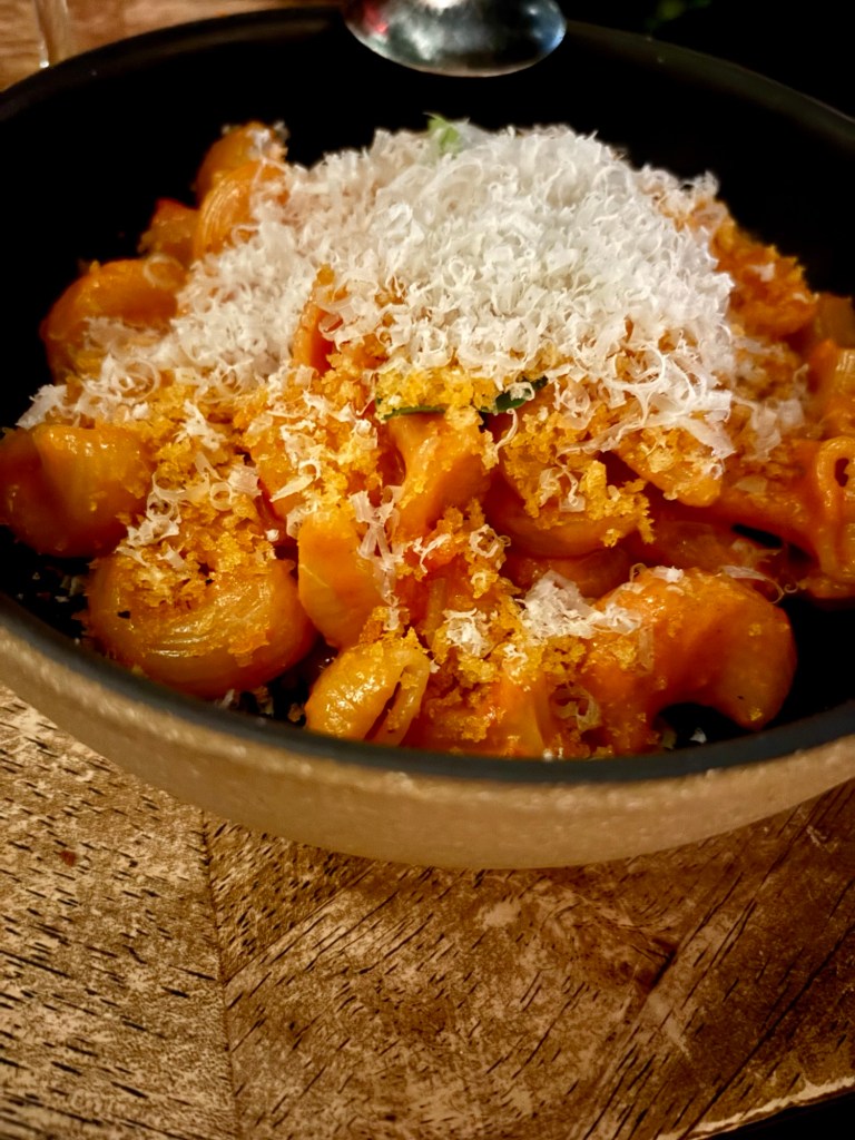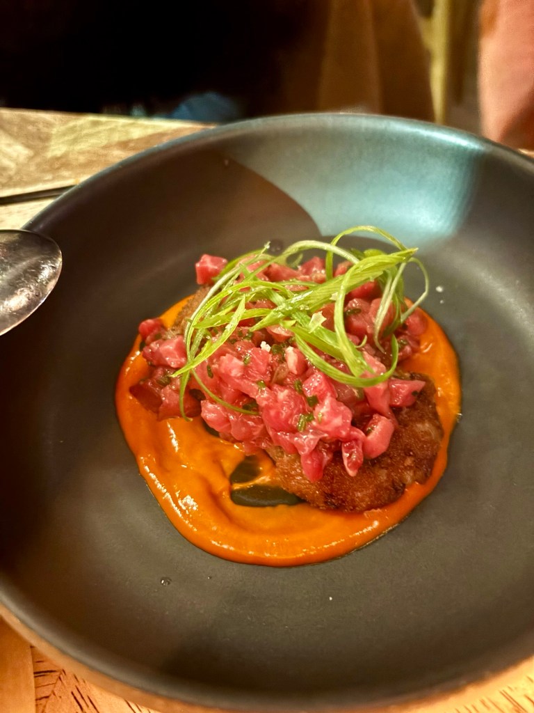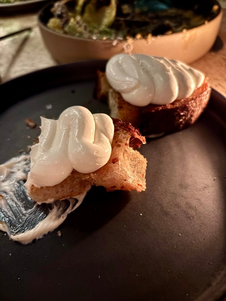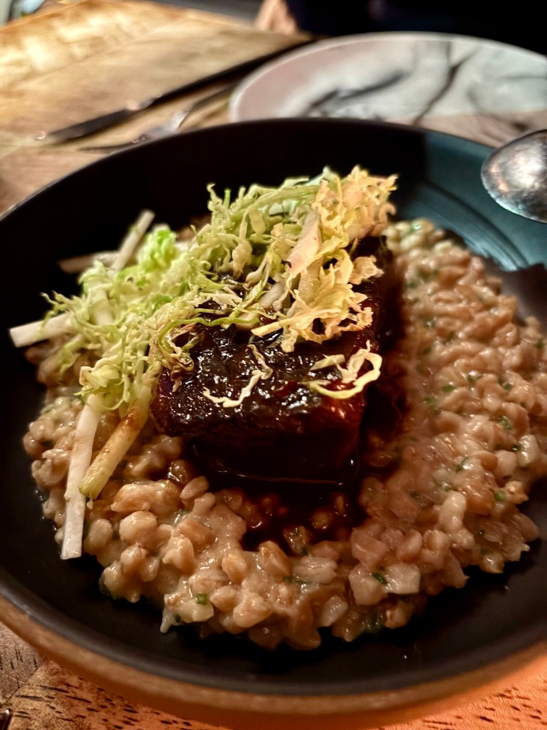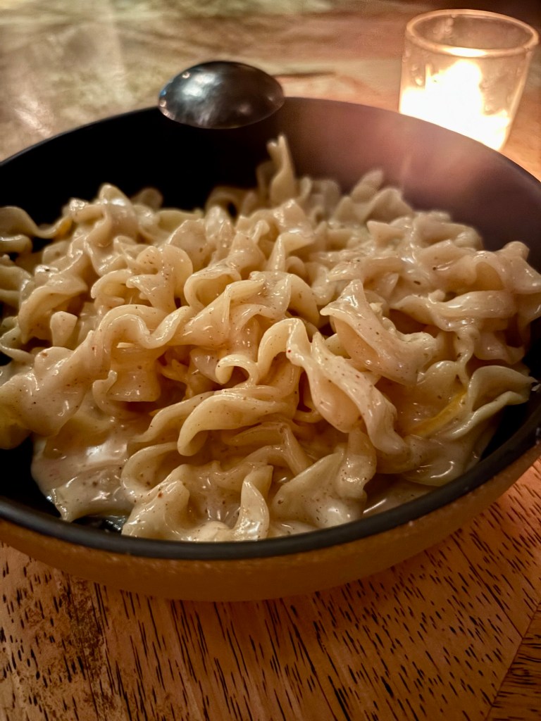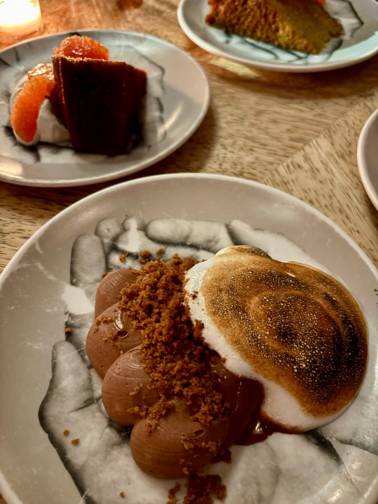 The headlines: this place is byob, very cozy, and boasts a fabulous menu with seasonal focus. They strongly encouraged us to dine family style and we’re all friends so we had no problem with that. It also meant we were able to make our way through most of the menu. For apps we got the tuna crudo (with apple ponzu, yuzu kosho, and pine nut cream), the whipped ricotta toast, spicy-ish Caesar, and the steak tartare (with “fried rice” arancini, yum yum sauce and a soy cured egg yolk). Each one was fabulous – truly – but the preparation of the tartare is what really got me. For mains, we got the spicy rigatoni (x2), mafaldine with a creamy Meyer lemon sauce, and the short rib with farrotto and celery root. Again, all great, but the rigatoni was particularly well-prepared. My only qualm with this section of the menu is that, aside from the short rib, which came with a supplemental charge, there was zero protein. I love a pasta course and have been known to get that as my main anyway, but I feel like you need to offer protein unless you are explicitly positioning yourself as a vegetarian-forward restaurant. Because it was Valentine’s Day and this was a prix fixe of sorts, we were simply given the desserts of the evening: their take on s’mores with ganache and marshmallow fluff and an olive oil cake with blood oranges. I’m not normally a dessert gal (gimme another order of that ricotta toast instead), but my fork diiiid return to that plate of “s’mores” more than once.