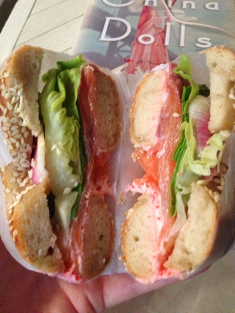 A lot of people love huge fluffy bagels. I personally prefer a thinner bagel – it’s easier for me to handle. Some people also like lox and cream cheese. Not me. Blame it on my Southern upbringing, but I just am not a fan. Lox is salty and slimy; too much cream cheese is overwhelming…