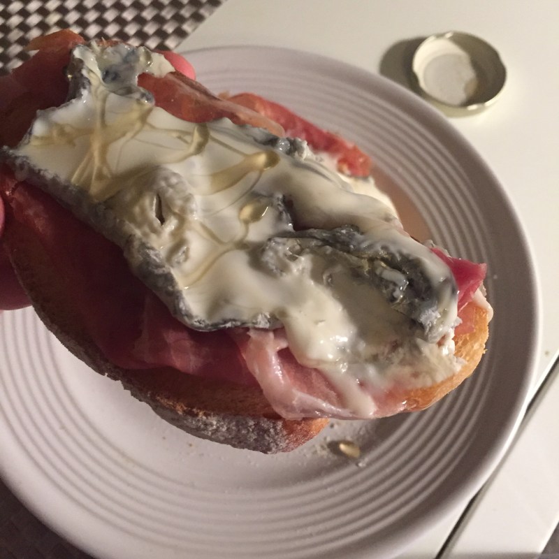 Toast with Prosciutto, Creamy Goat Cheese, and Honey
